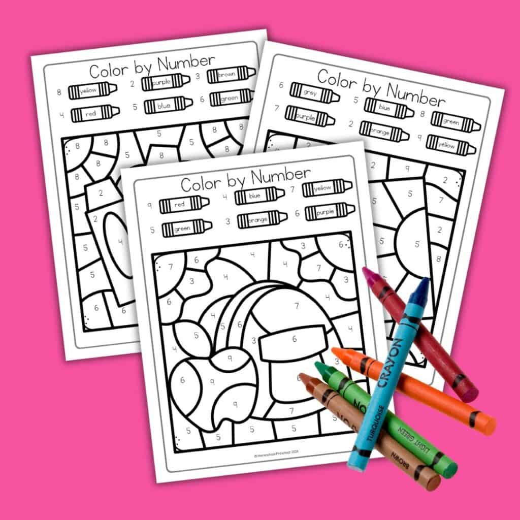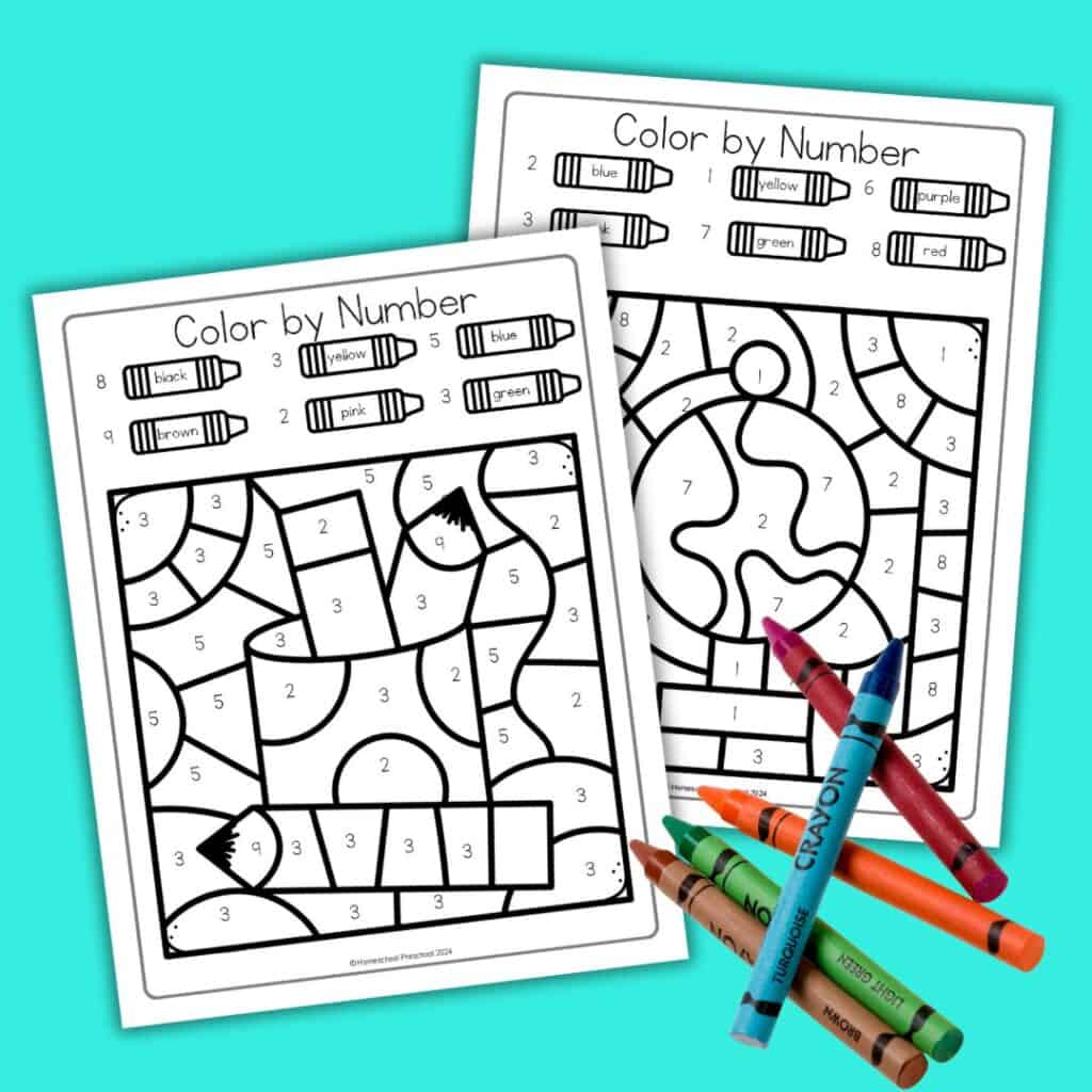 Color by number worksheets improve number recognition, color identification, fine motor skills, and hand-eye coordination
