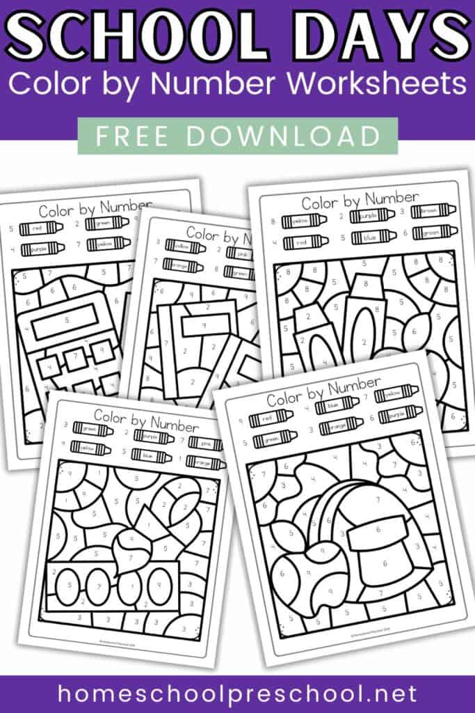 School days color by number worksheets are an excellent way to combine learning and play for preschoolers. These activities promote number recognition, color identification, and fine motor skills, all while keeping kids engaged with a fun back-to-school theme. Perfect for use at home or in the classroom, these worksheets will surely be a hit with your little learners.