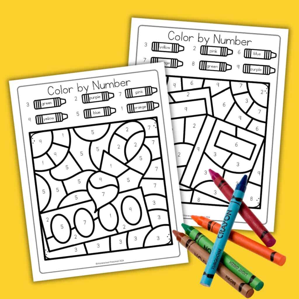 To get started, gather crayons, markers, or colored pencils and print the worksheets. Show your child how to find the numbers on the worksheet and match them with the corresponding colors.