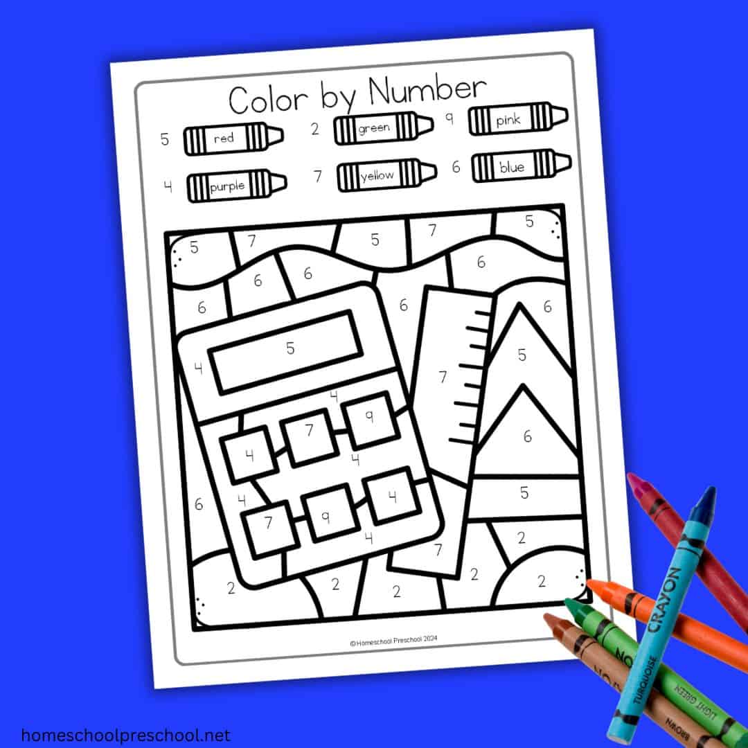 Are you looking for a fun and educational way to teach your preschoolers about school supplies? Our school supplies color by numbers activity is the perfect blend of creativity and learning!