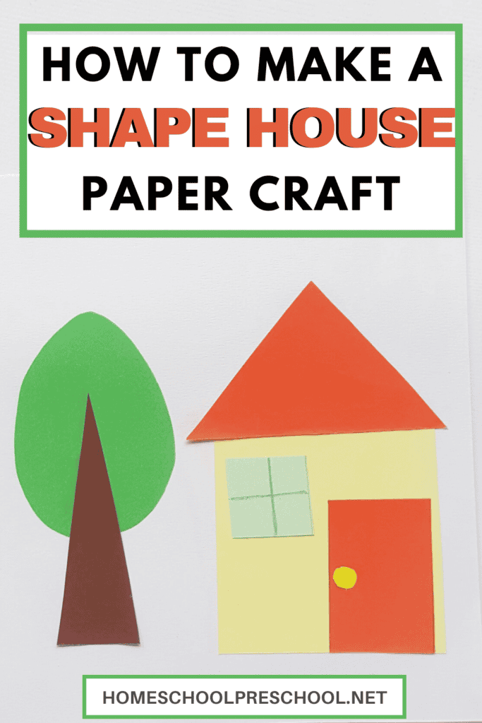 If you plan to use this with toddlers, you can precut the shapes for your little ones. Then, review shape names as your kids glue the craft pieces to make the house.