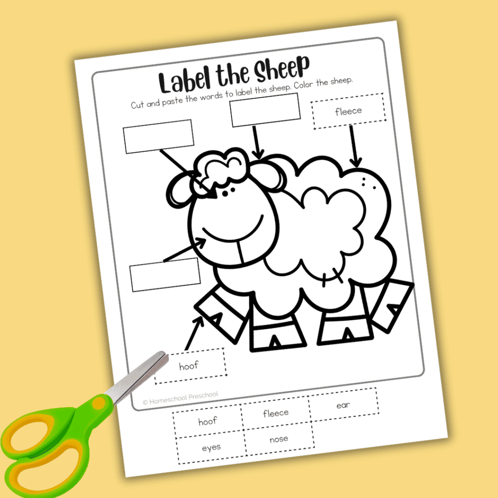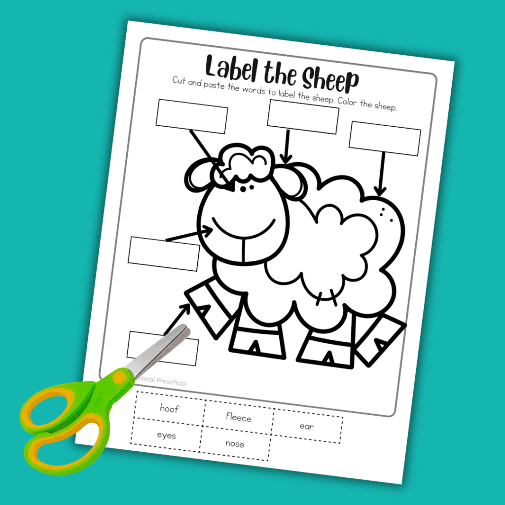 To get started, simply print out the worksheet. Then, have your child cut out the labels and glue them onto the correct parts of the sheep.