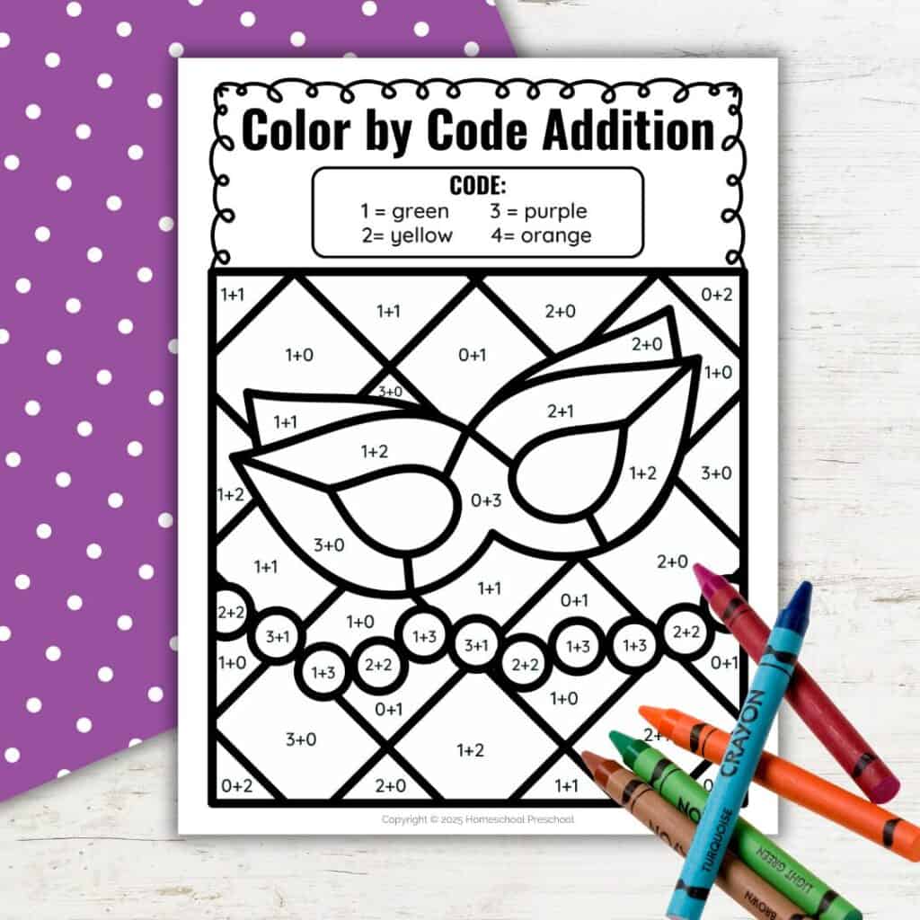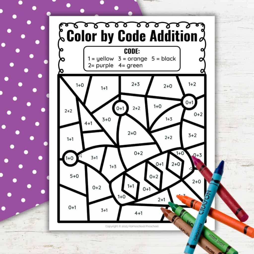 These color by code worksheets are perfect for preschool and kindergarten students who are just beginning to add. Whether you’re teaching at home or in the classroom, these printables make learning feel like play. Just grab some crayons, and you’re ready to go!