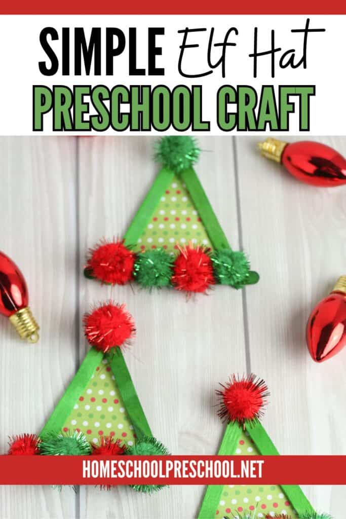 Are you looking for an engaging way to celebrate the season with little ones? This simple elf craft is the perfect choice for holiday preschool crafts! Using patterned paper, colored craft sticks, and mini pom poms, kids can create their own whimsical elf hat in just a few easy steps.