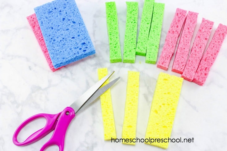 Cut each sponge lengthwise into 4 pieces.
