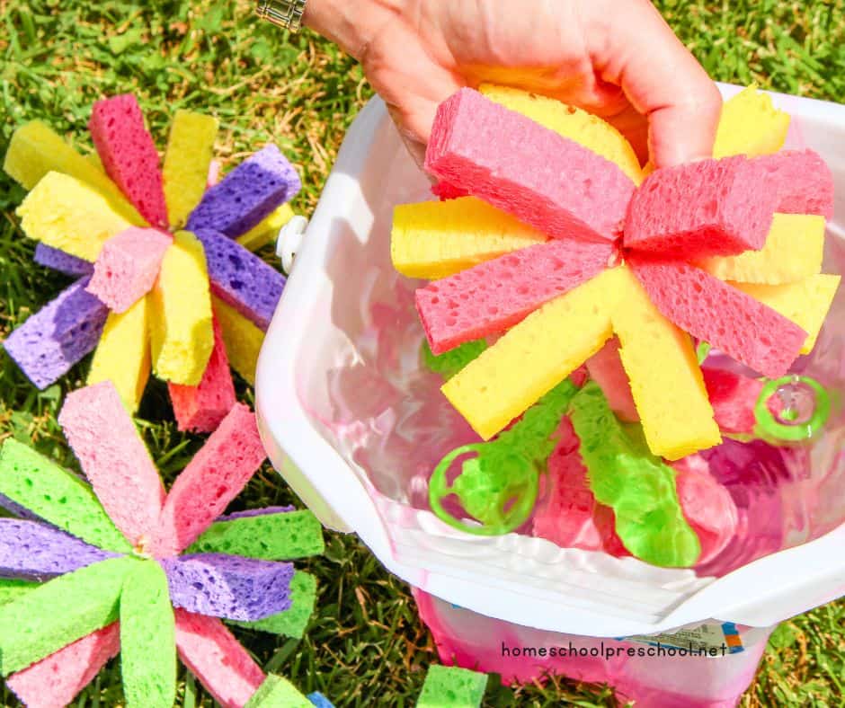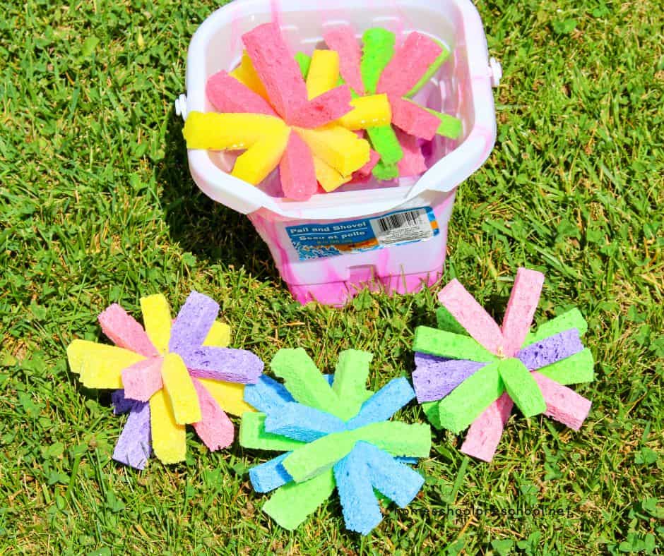 With a bucket of water to refresh the sponge bombs, kids will play for hours on a warm summer afternoon. The best part is that you can find the supplies for cheap at your local dollar store!