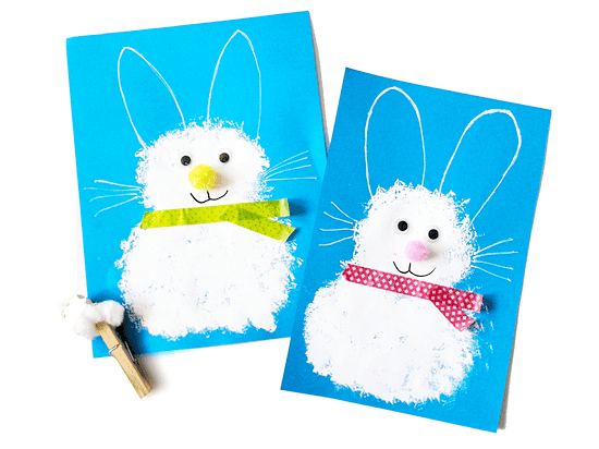 Make an adorable Easter bunny craft using cotton ball stamping for a festive and fluffy touch.