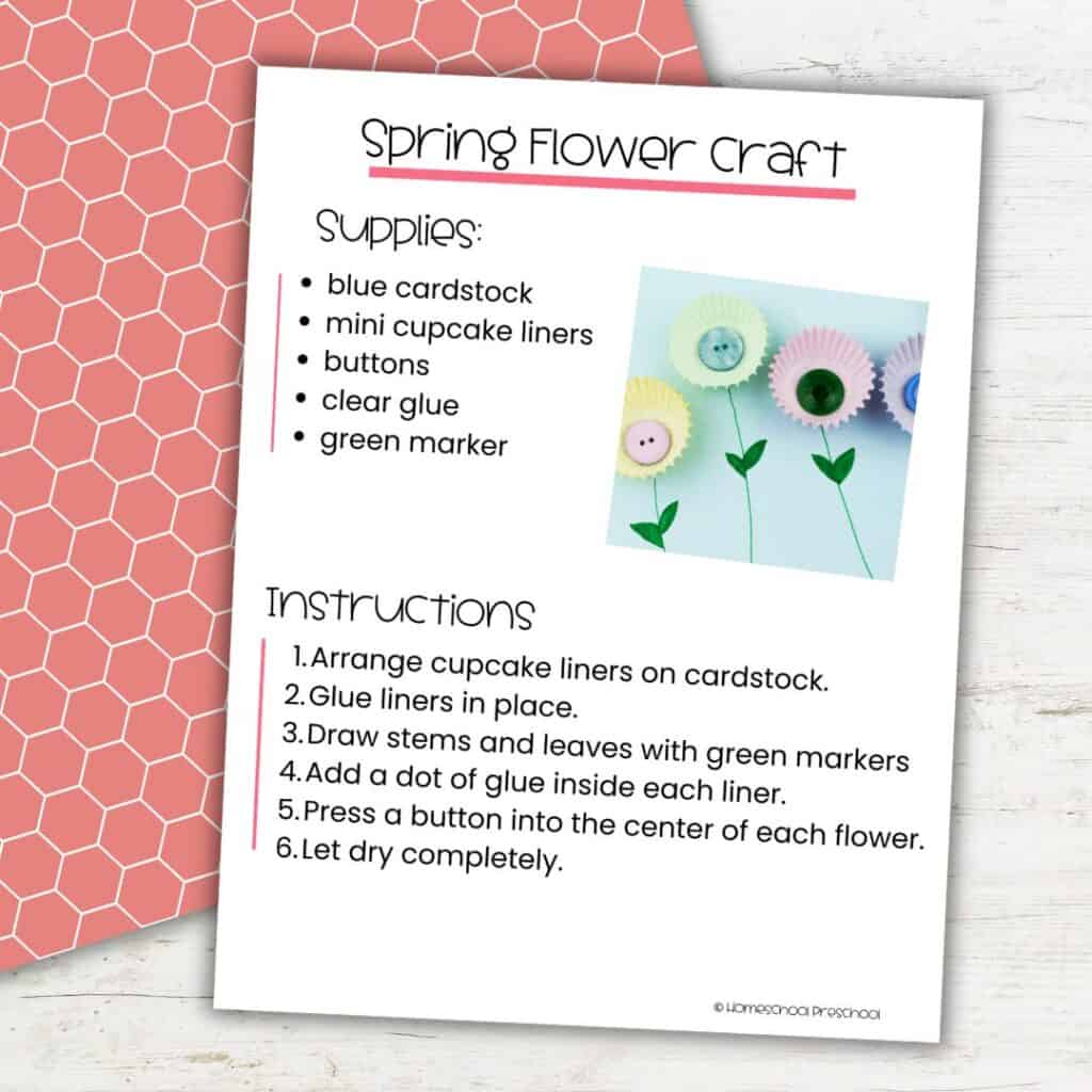 If your 3–5 year old needs more spring activities to round out your week, grab our spring printables to pair with this craft. A couple of worksheets, a book, and this activity is a full morning without any extra planning on your end.