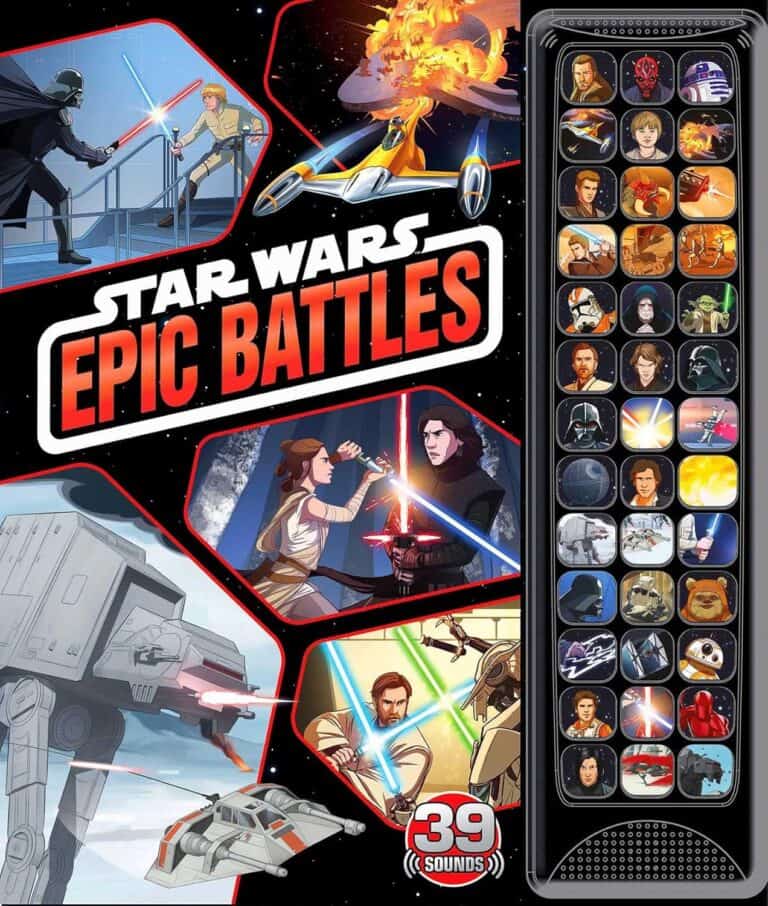 This 10-button Star Wars sound book contains cool lightsaber battle sounds, classic quotes, and more from this fan-favorite franchise. This sturdy board book will entertain young children for hours as they learn about the dark side of a galaxy far, far away…