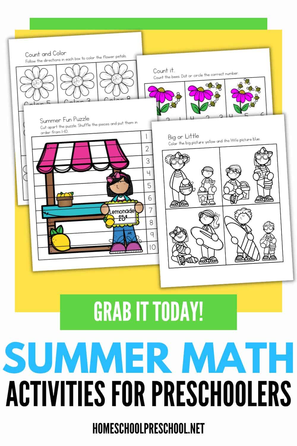 Looking for fun ways to keep learning going this summer? These summer math activities for preschoolers make it easy! Kids can practice counting, graphing, number recognition, and more with simple, hands-on worksheets.