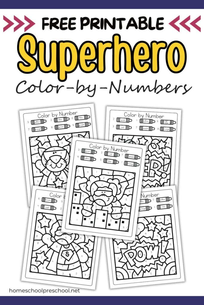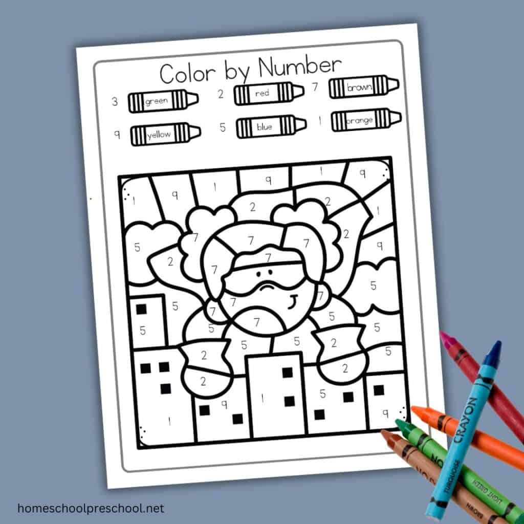 Color by numbers pages are a great way to sneak some learning into your preschooler’s day. The superhero theme adds that extra bit of fun, making kids eager to participate.