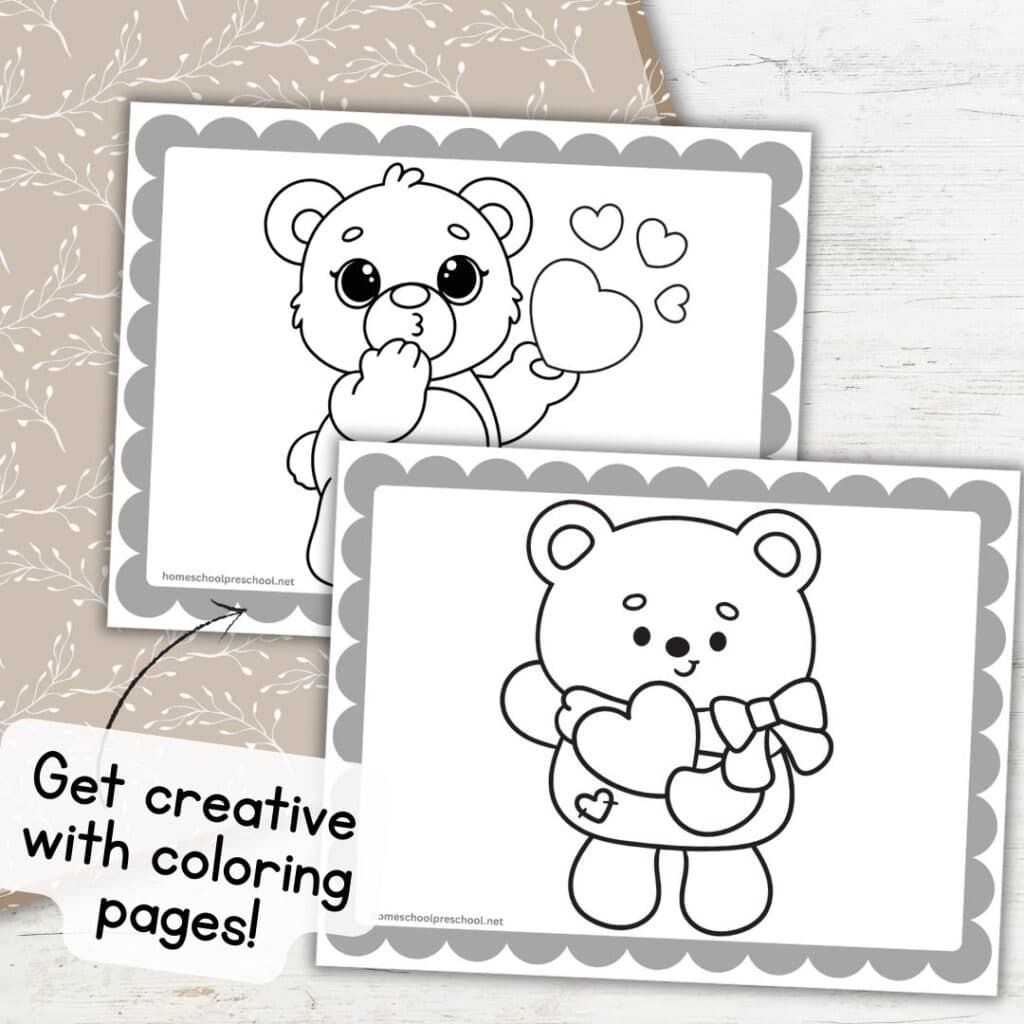 Teddy bear coloring pages: Print a few bear-themed coloring sheets and set up a cozy corner with crayons or markers. This relaxing activity also makes a sweet keepsake from the day.