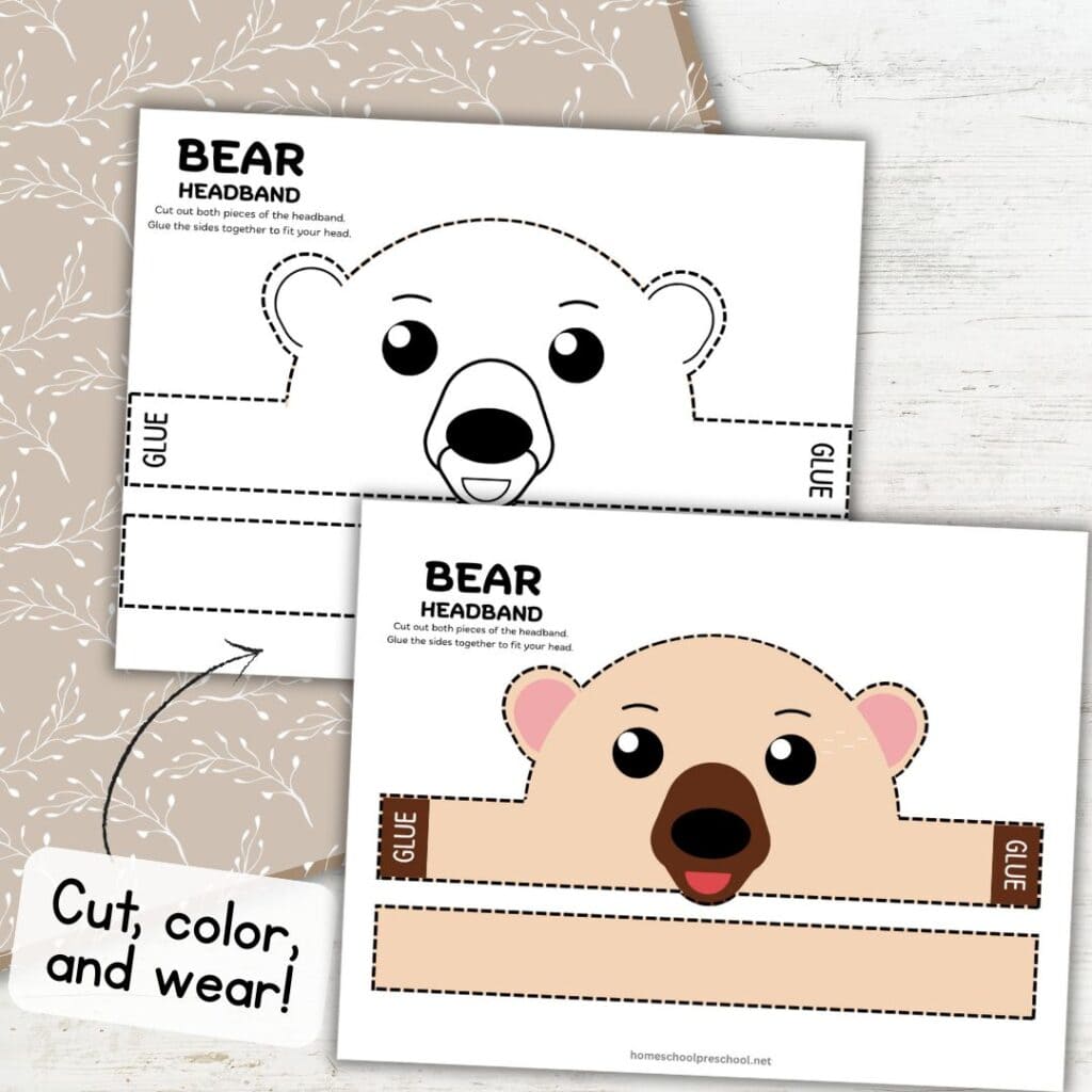Get crafty with bear ears: Add a little dress-up fun by making DIY bear ear headbands. All you need is the free template provided at the bottom of the page, scissors, and glue. Kids love becoming part of the bear crew!