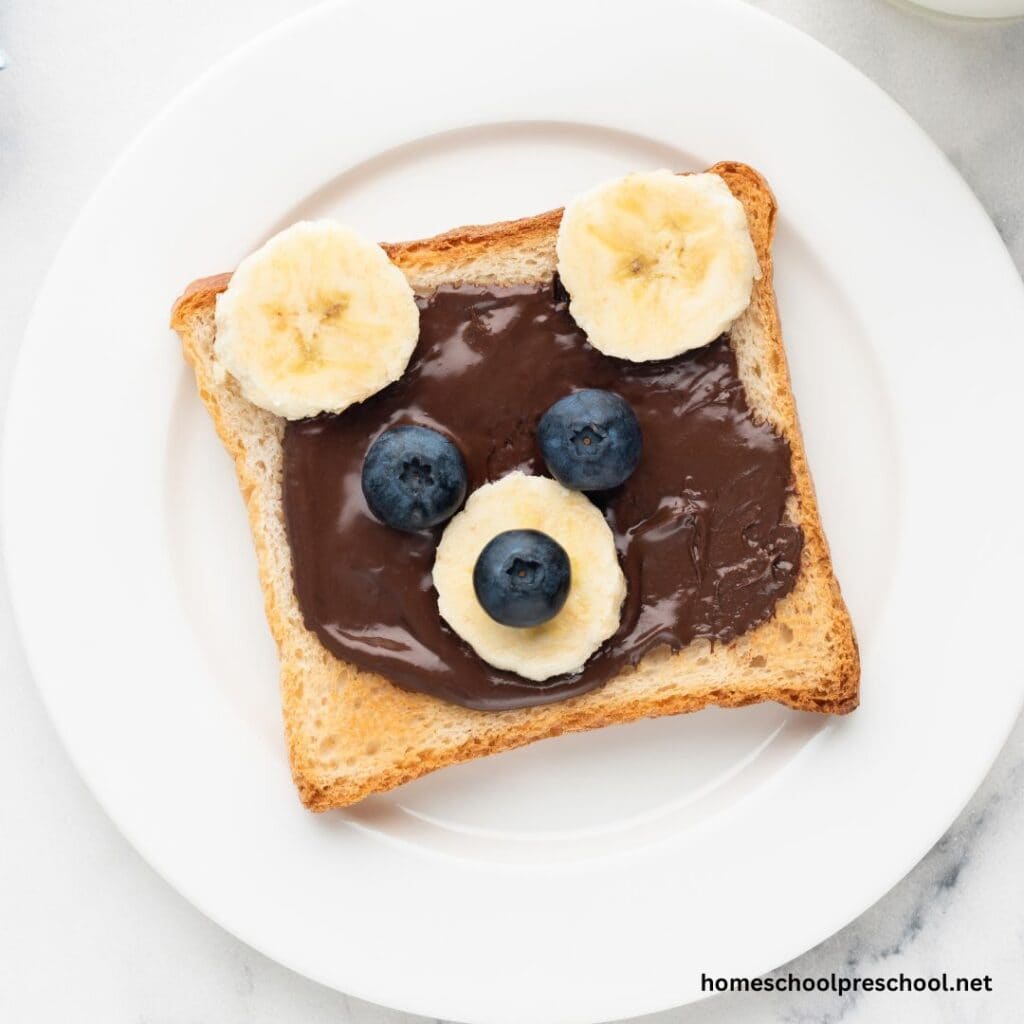 Teddy bear toast: Spread a little nut butter or cream cheese on toast, then use banana slices for ears and a nose, and raisins for eyes and a smile. It’s almost too cute to eat (almost)!