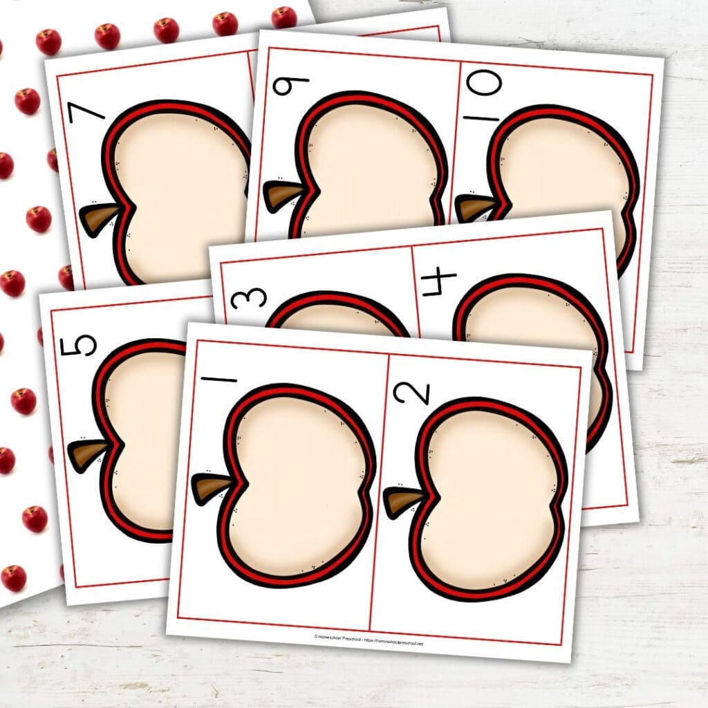 - Apple counting mats for practicing one-to-one correspondence.