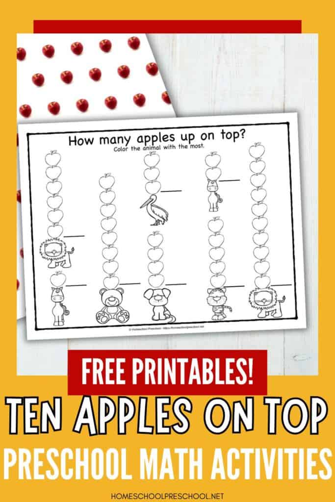These activities are a fantastic way to extend the fun of Ten Apples Up on Top while practicing essential preschool skills.