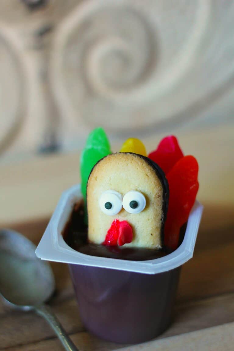 No-bake turkey cookie pudding cups are a sweet treat for Thanksgiving or Fall Harvest party.