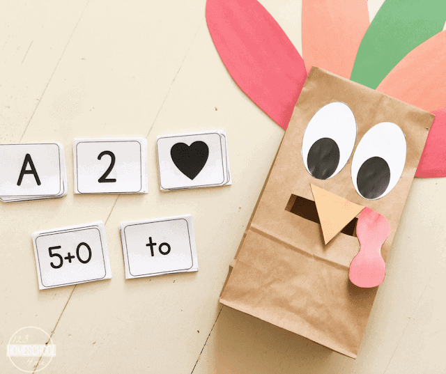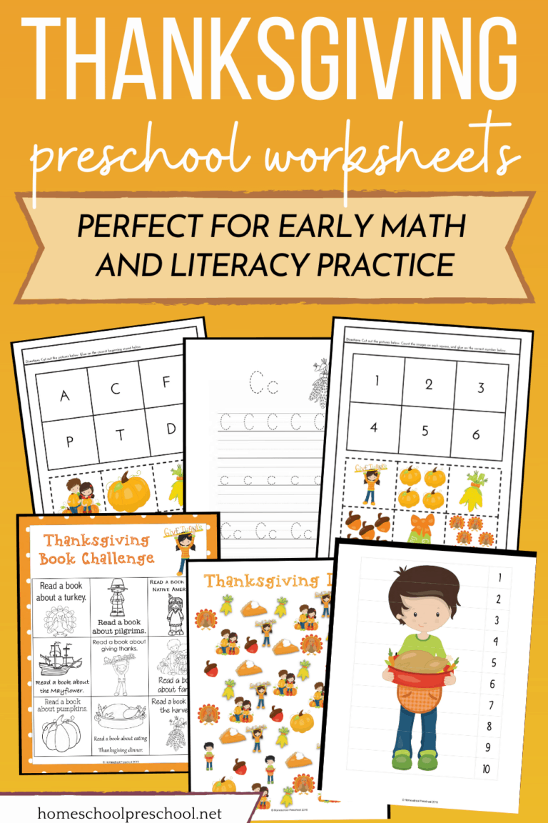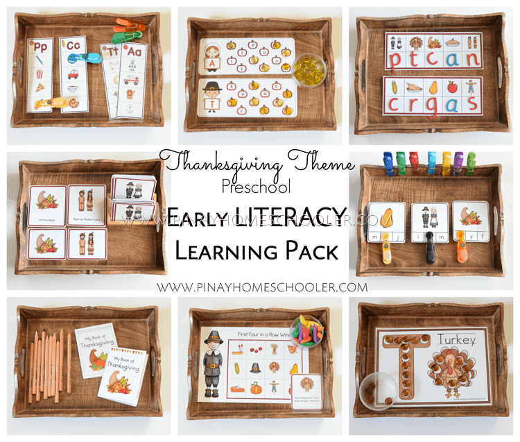 This Thanksgiving printable contains both math and literacy activities. The literacy activities include letter recognition, ABC matching cards, a writing prompt, and more. Homeschool Preschool