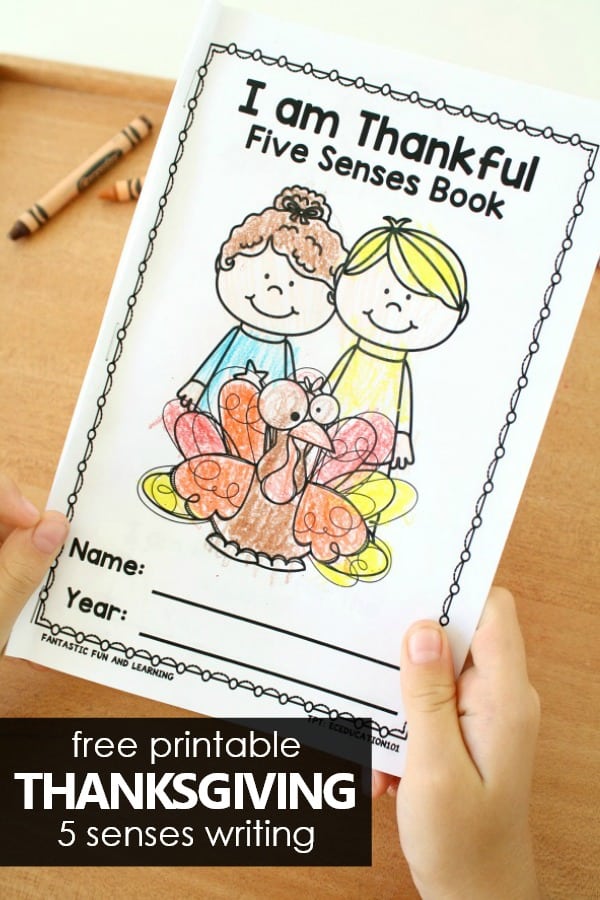 Here’s a fun Thanksgiving 5 Senses easy reader that little ones will enjoy. Each page has a sentence starter, a place to write what they’re thankful for, and a place to illustrate the story. Fantastic Fun and Learning