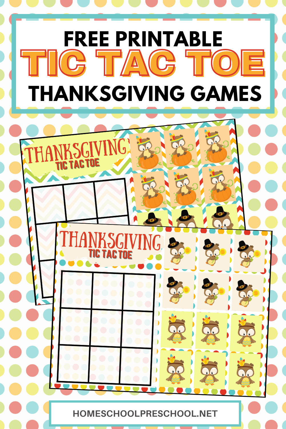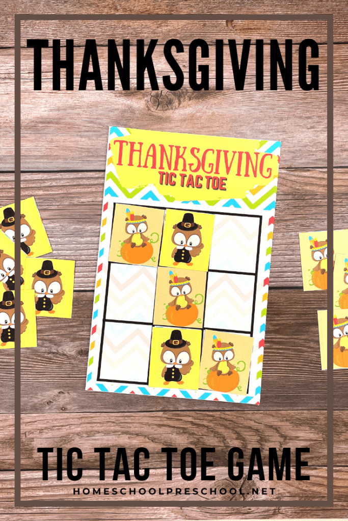 Print out these Thanksgiving tic tac toe game boards for a fun holiday activity for kids. Perfect for the kids’ table!