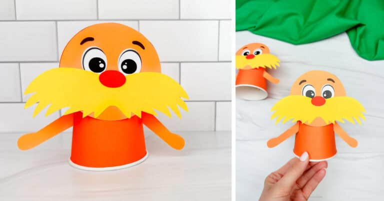 Lorax Paper Cup Craft For Kids (Free Printable Template)