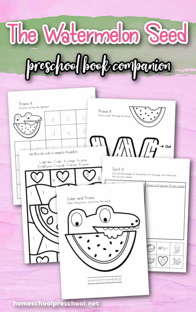If you’re reading The Watermelon Seed with your preschoolers this summer, help them practice math and literacy skills with these free The Watermelon Seed activities.