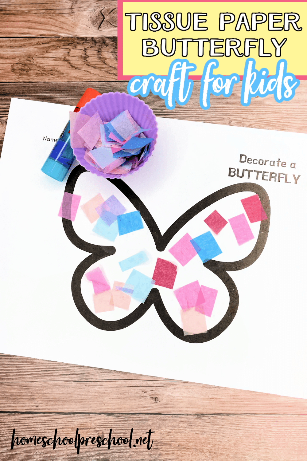 Are you looking for a fun activity to add to your butterfly activities for preschoolers? You’ll love this simple tissue paper butterfly craft.