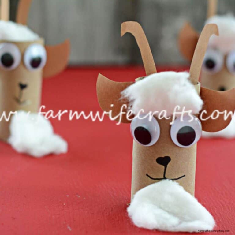This craft uses a toilet paper roll, cotton balls, and googly eyes to make a cute little goat. Kids can cut out ears and horns from brown paper and glue them on. Adding a fluffy beard and a happy face makes it extra fun.