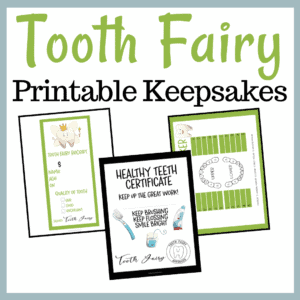Write your child’s name on the Healthy Teeth certificate and laminate it. Leave it under your child’s pillow with the Tooth Fairy’s gift. Then, you can tuck it away in a keepsake box.