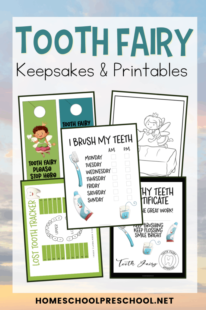 Whether your child has a wiggly tooth or just lost one, they’ll love the coloring pages in this pack. There are four pages to color, and they’re great for starting a conversation about why the tooth is loose, how to care for our teeth, or what to expect from the Tooth Fairy.