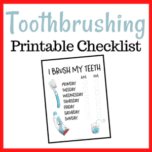 Next, you can print and laminate the I Brush My Teeth checklist. Hang it beside the bathroom sink, and have your child mark the list each time he/she brushes their teeth.