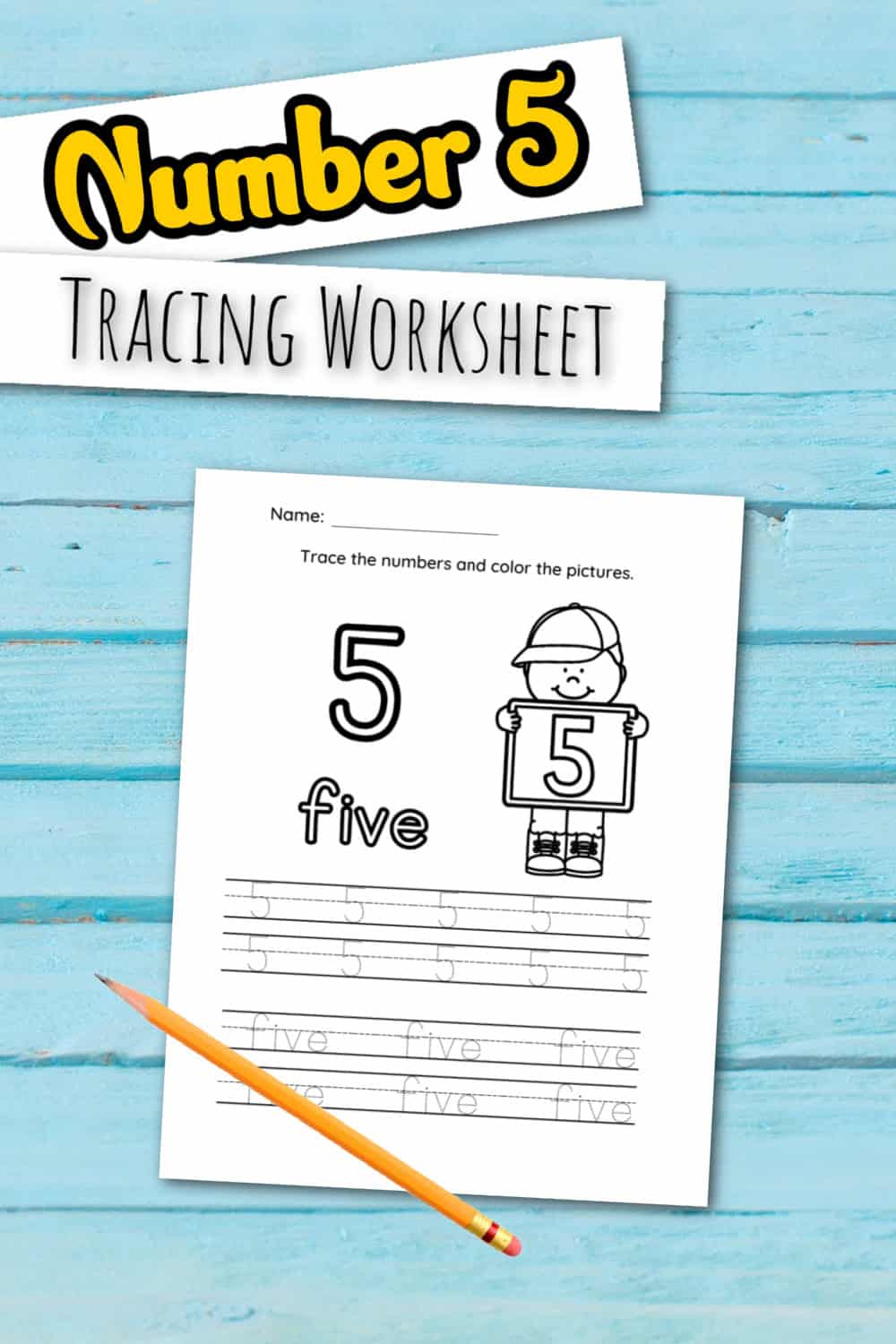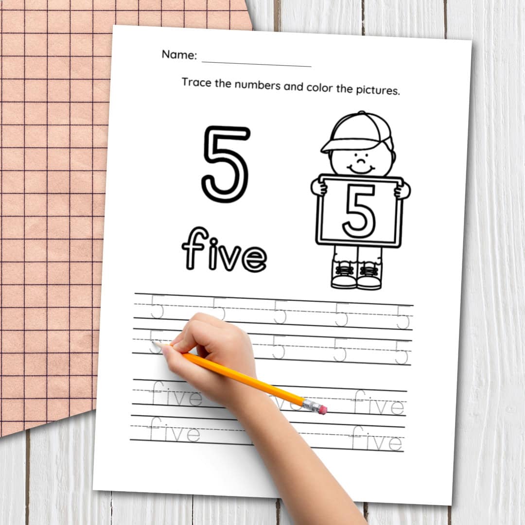 This can be done by tracing the number 5 over and over again on our worksheet. Additionally, students can practice writing the number 5 on their own on the backside of the printable.