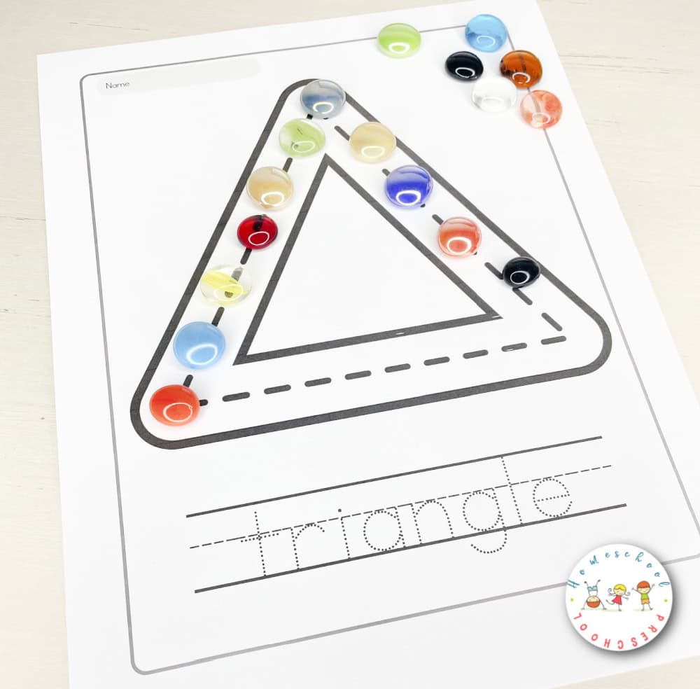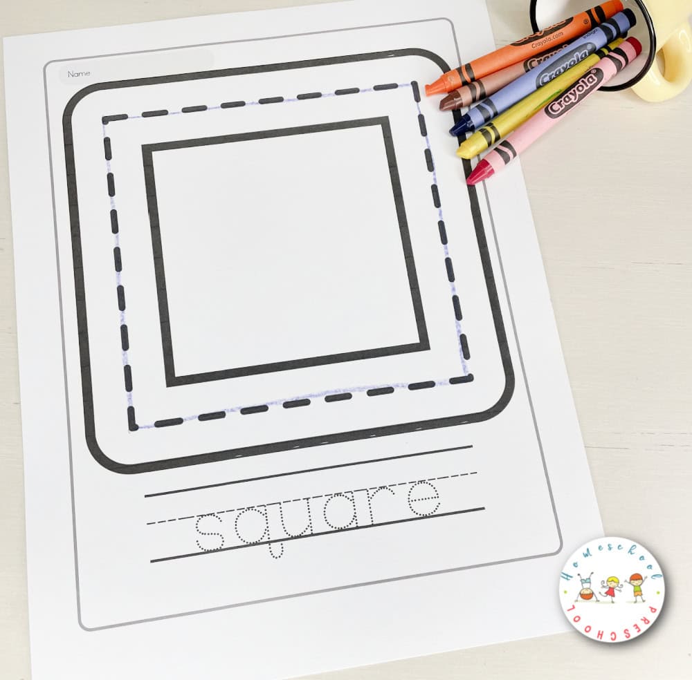 Skip the letter tracing if your young preschoolers aren’t ready for that task. For older preschoolers, have them trace the name of the shape and then write it on their underneath.