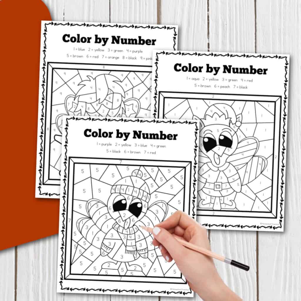 - Turkey color by number worksheets (enter your email in the form at the end of this post to access the file)