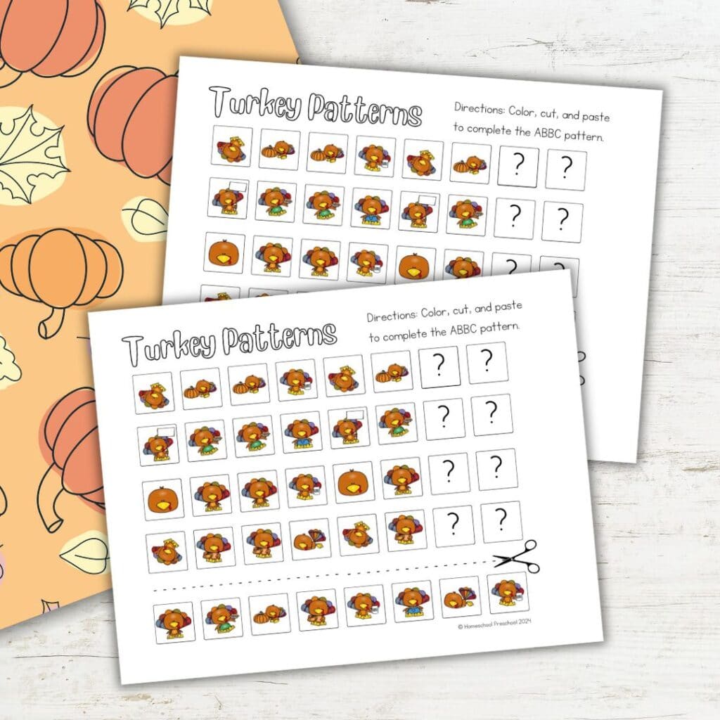 Turkey Patterns for Preschool
