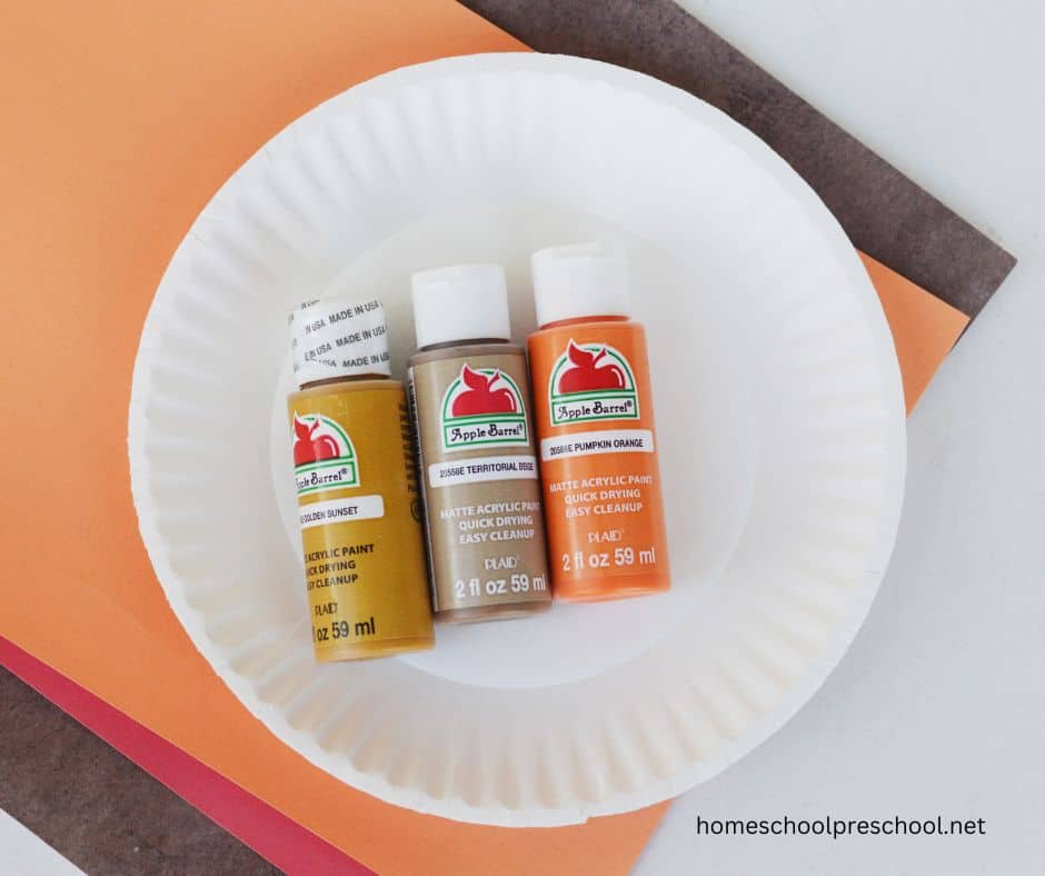 - fall colored paint (brown, yellow, orange, and red)