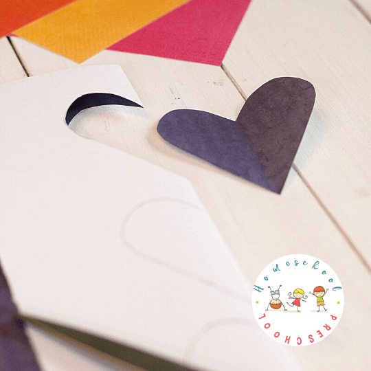 To make this Valentine paper craft, draw a half of a heart on your construction paper, and cut it out. You can also download a Valentine heart template to trace, if you’d prefer.