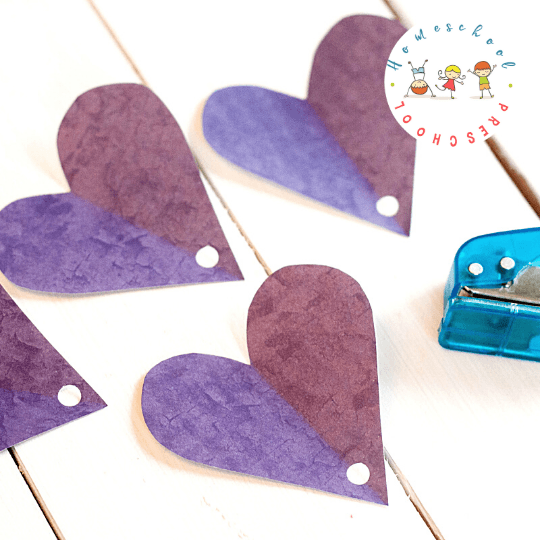 Punch a hole about ¼” from the tip of each heart.