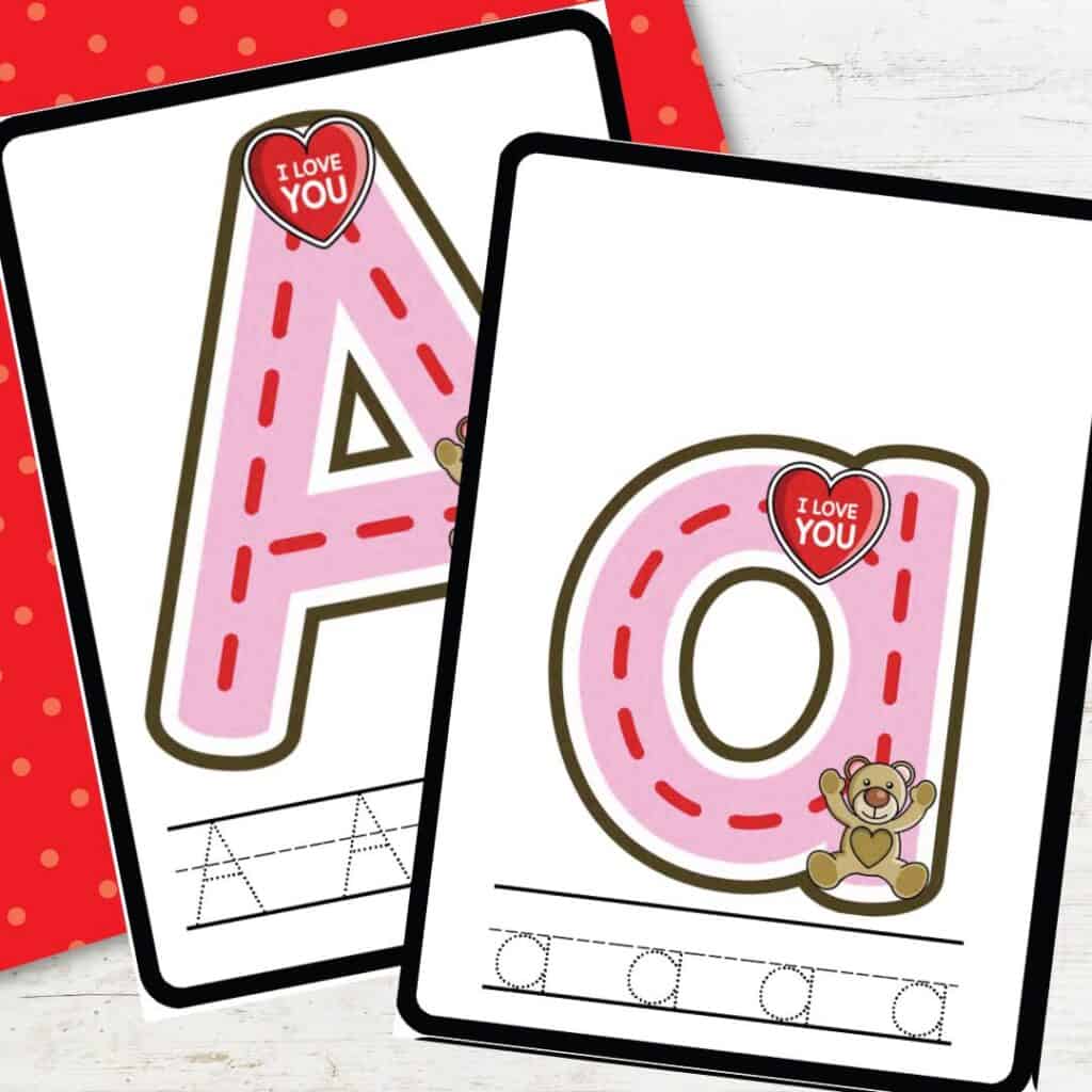 • Pages: 52 Valentine-themed letter tracing cards (A–Z focus)