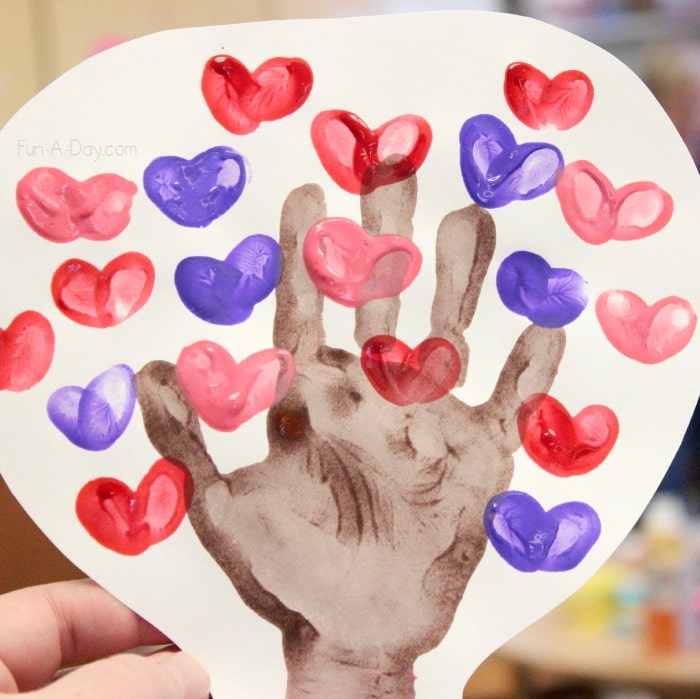 Paint your preschooler's hand and arm brown for the tree trunk, then let them fingerprint hearts all around. It's messy, but it makes a keepsake worth keeping. The fingerprinting part involves fine motor control as they decide where each heart goes.