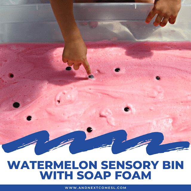 If your little ones are old enough to play without putting things in their mouths, try out this watermelon soap foam sensory bin.