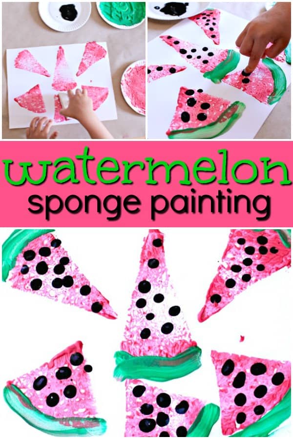 Watermelon and summer go hand in hand, and this watermelon sponge painting activity is a great tactile activity for preschoolers.