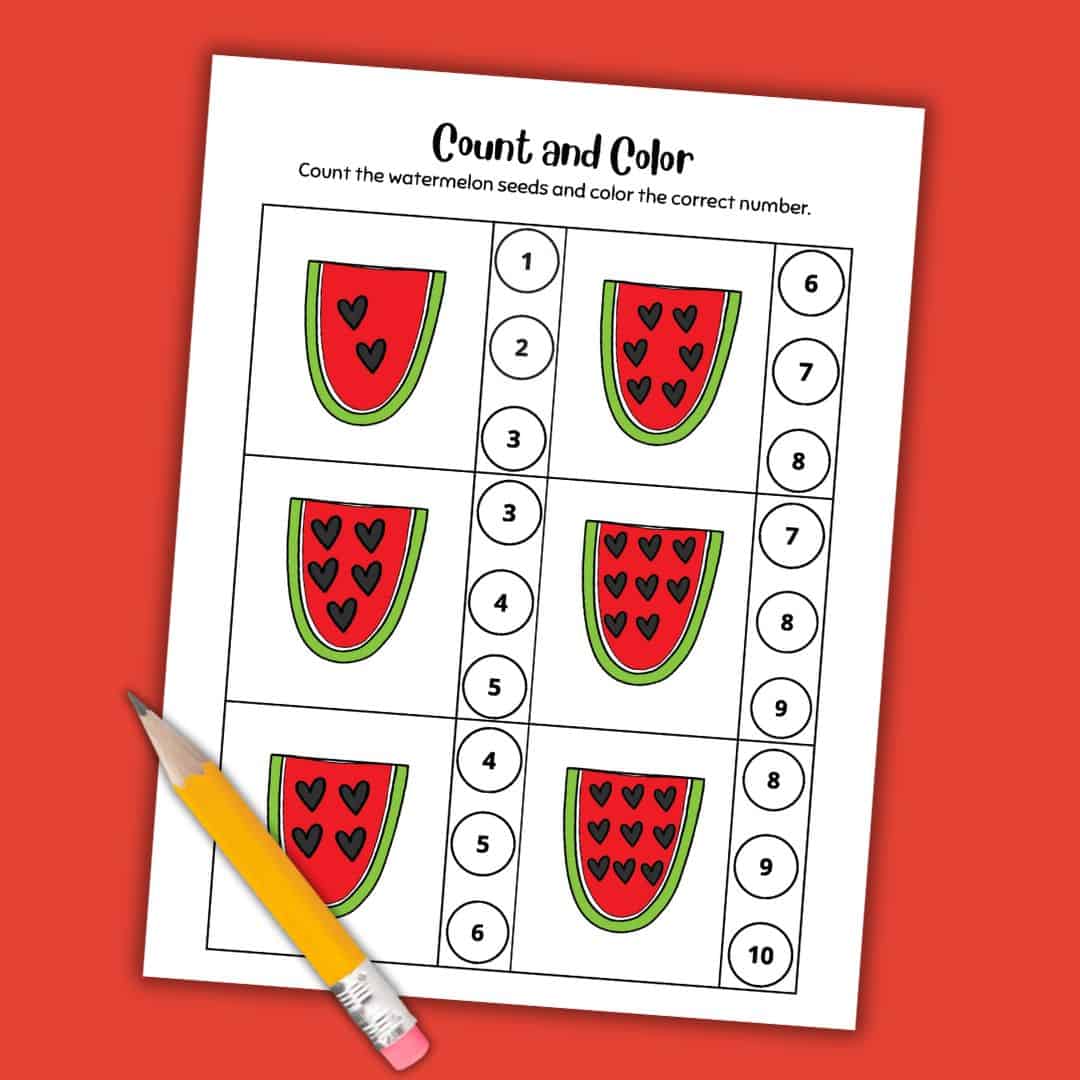 Demonstrate: Show them how to count the watermelon seeds on the worksheet. Count aloud together to reinforce the concept.