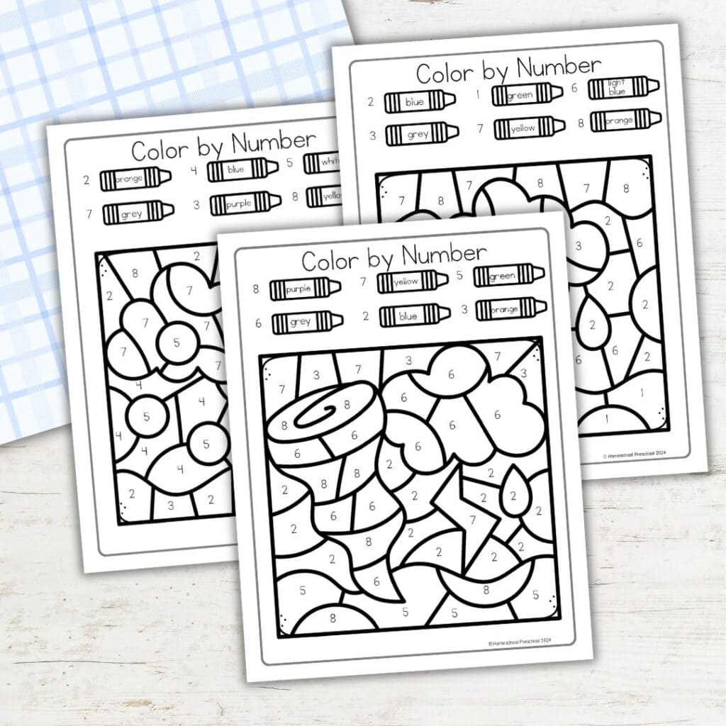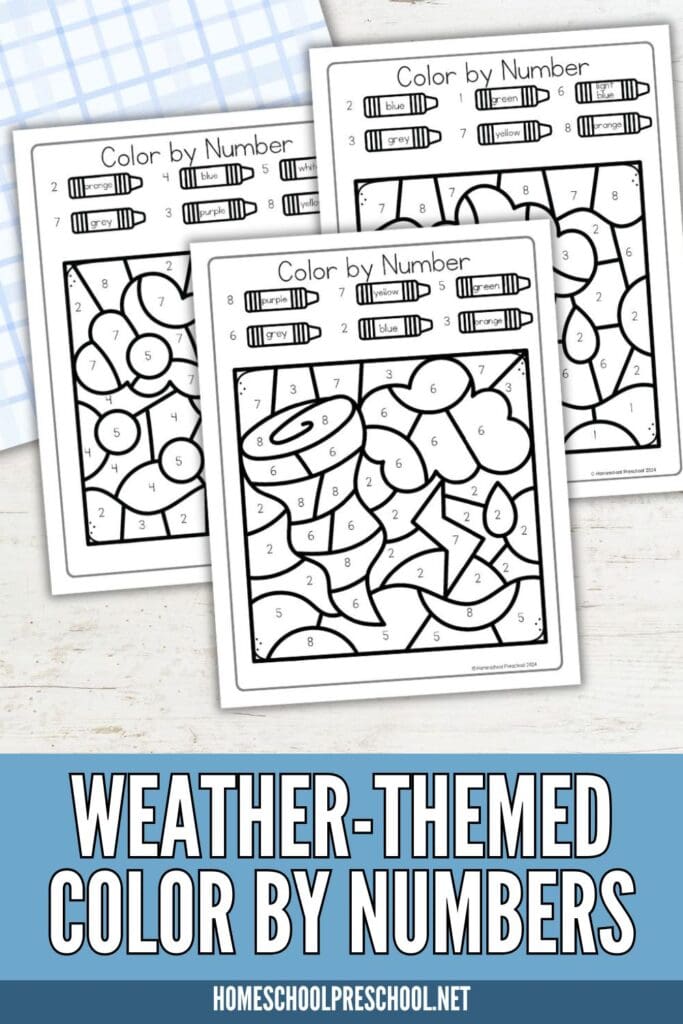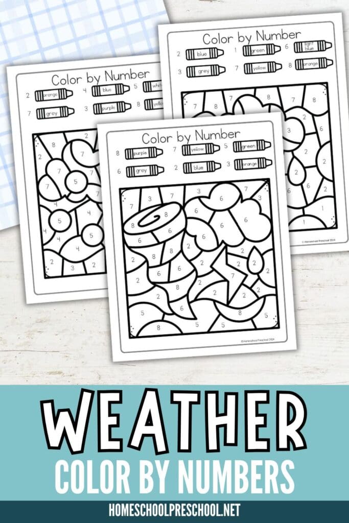 With these color by number worksheets, kids can learn colors, numbers, and even a little about weather—all in one fun activity! Download your free printables today and let the coloring fun begin!