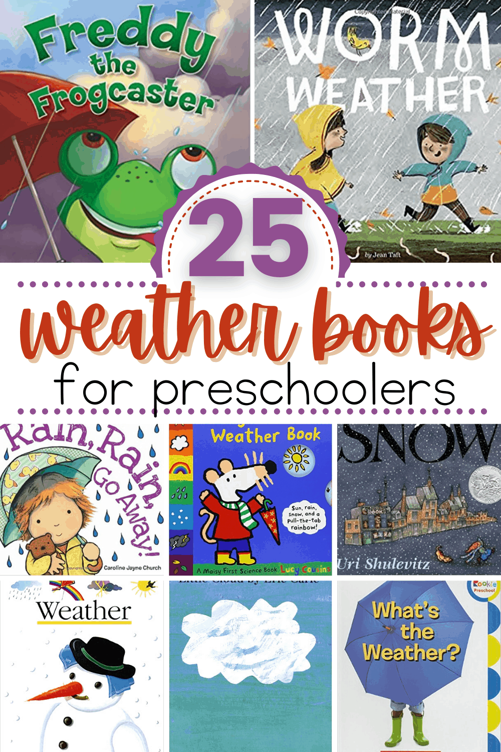 Fill your book basket with a great collection of books about weather. Most of these books can be found at your local library or used bookstore.