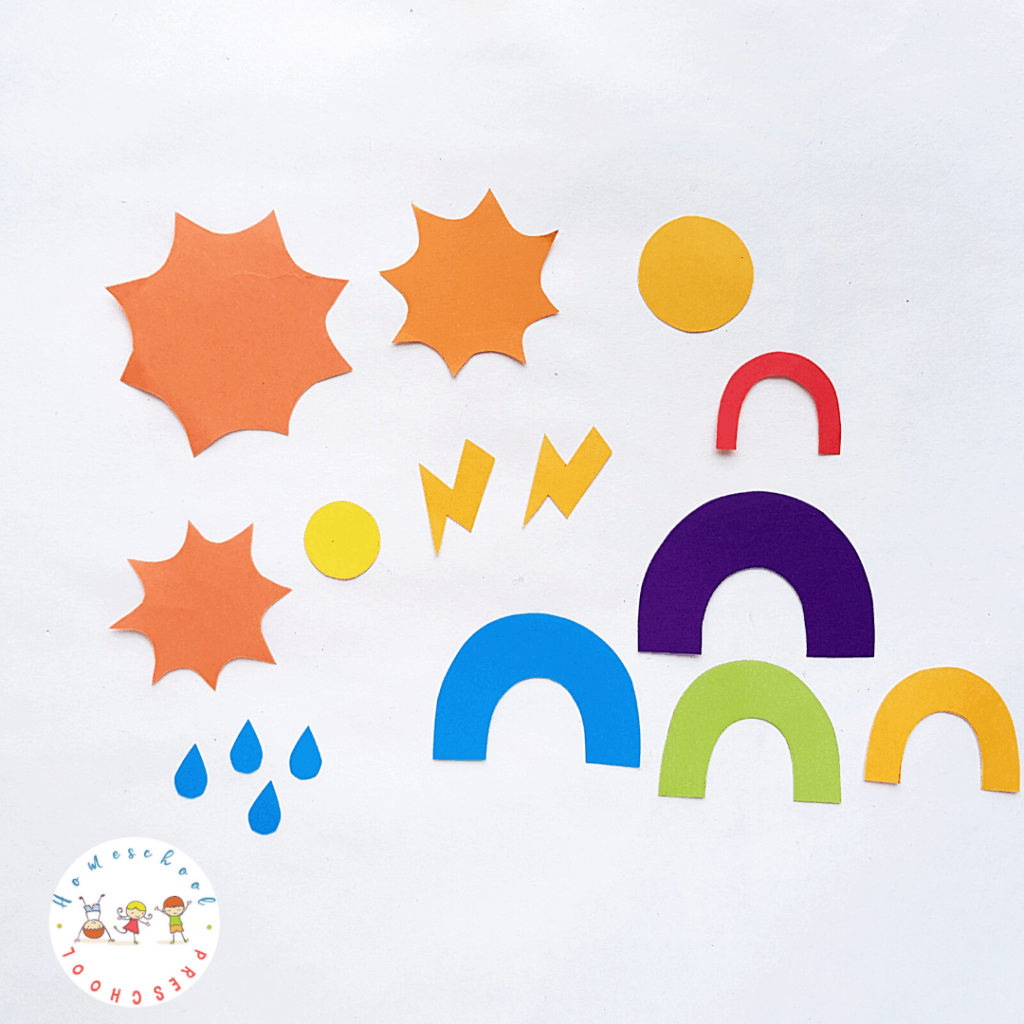 All you need to complete this preschool weather activity is some craft paper, scissors, glue, and the free printable weather template below.