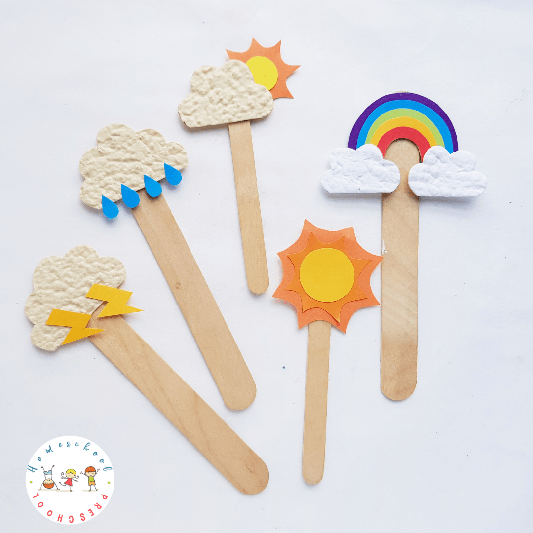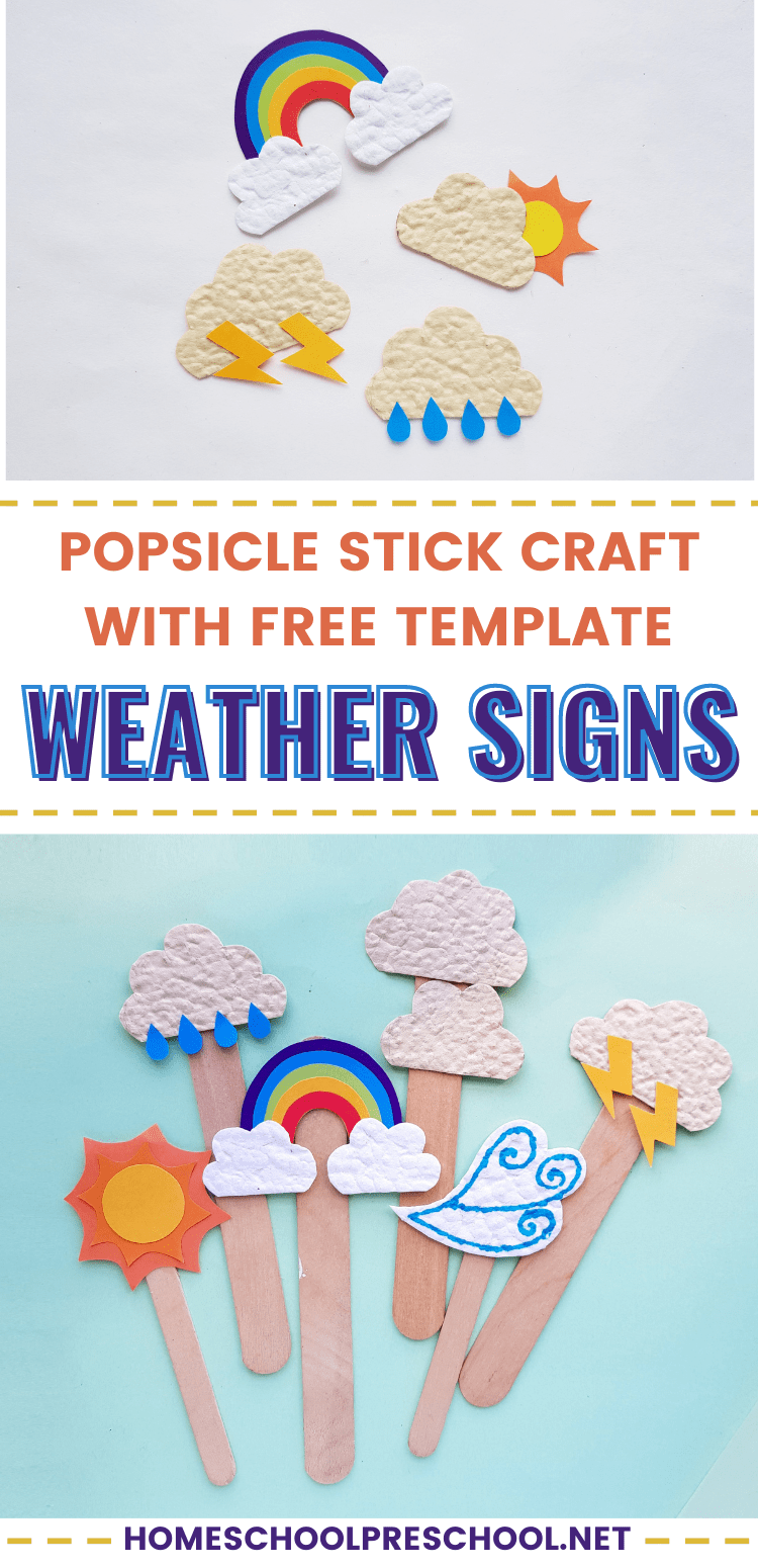 This weather popsicle stick craft is a fun activity for kids. Download the free template to make it with your preschoolers.