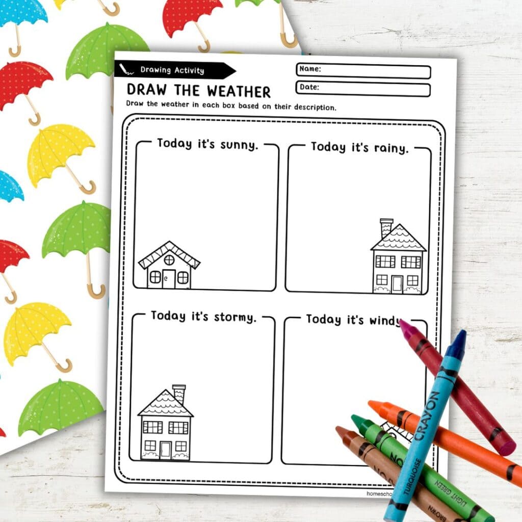 Drawing the weather encourages kids to look closely at the world around them and notice details about different weather conditions. As they illustrate sunny, rainy, or stormy days, they learn to connect what they see outside with the words and concepts they’re learning. This strengthens their observation skills and helps them describe the weather in their own words.