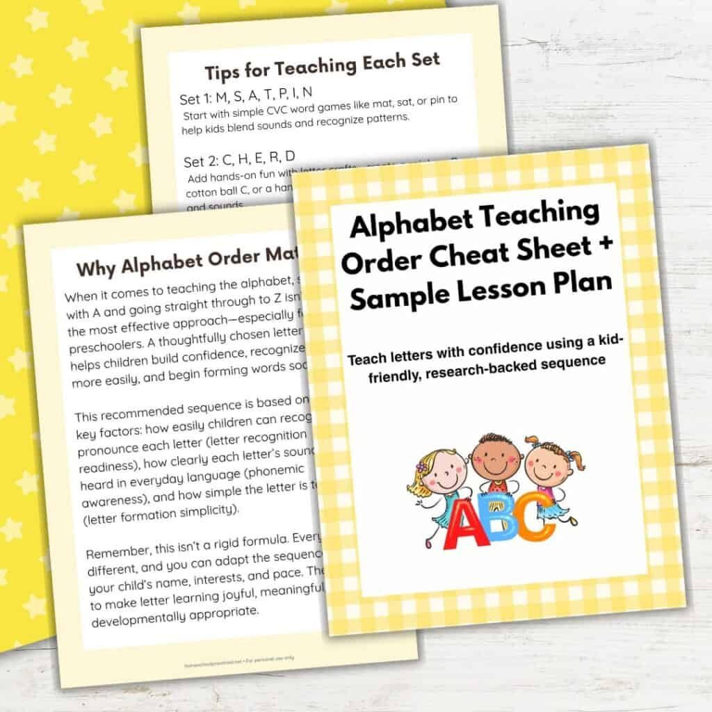 Grab our Alphabet Teaching Order Cheat Sheet & Sample Lesson Plan!