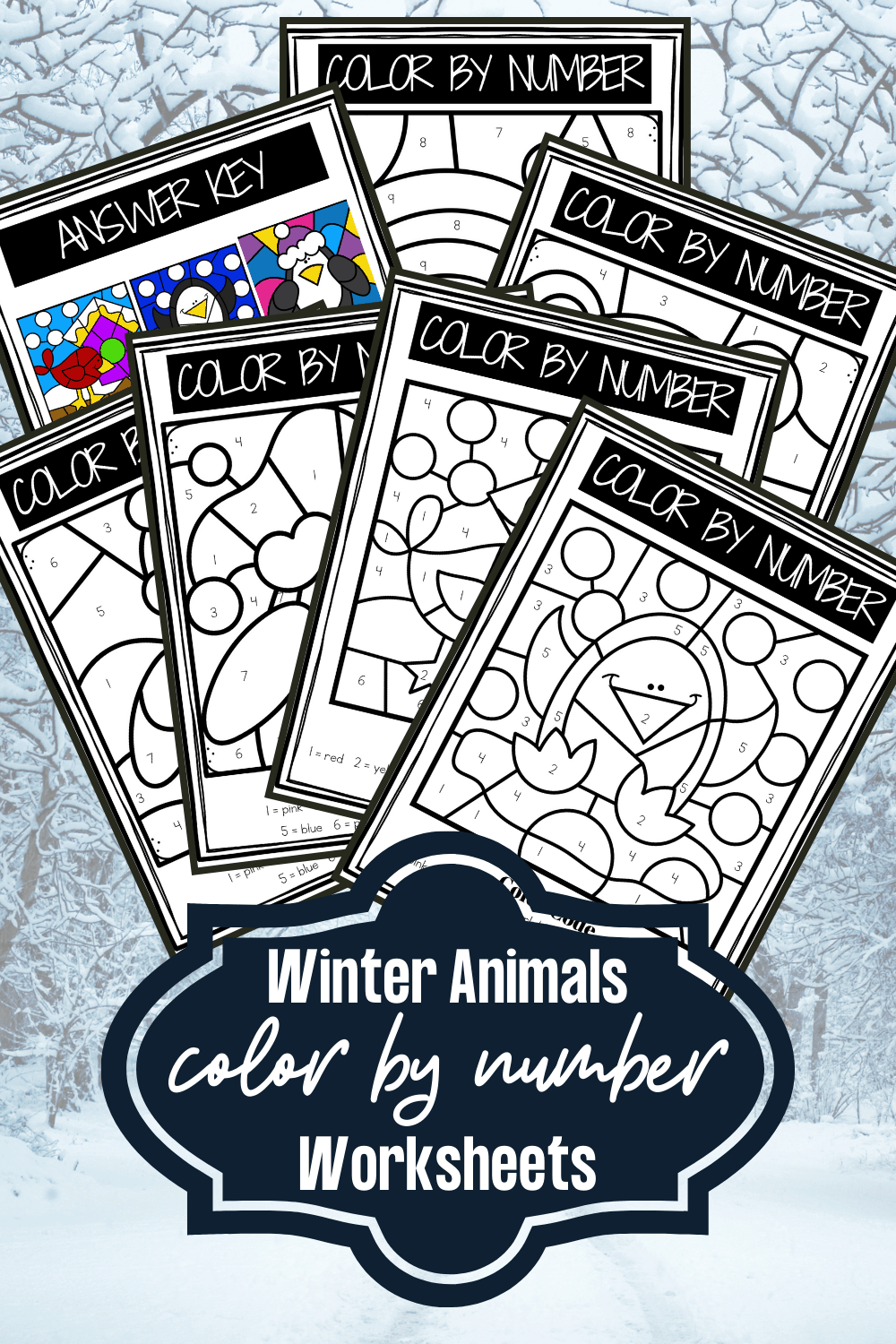 These winter animals color by number worksheets are a great way to work on color words and number recognition through nine.